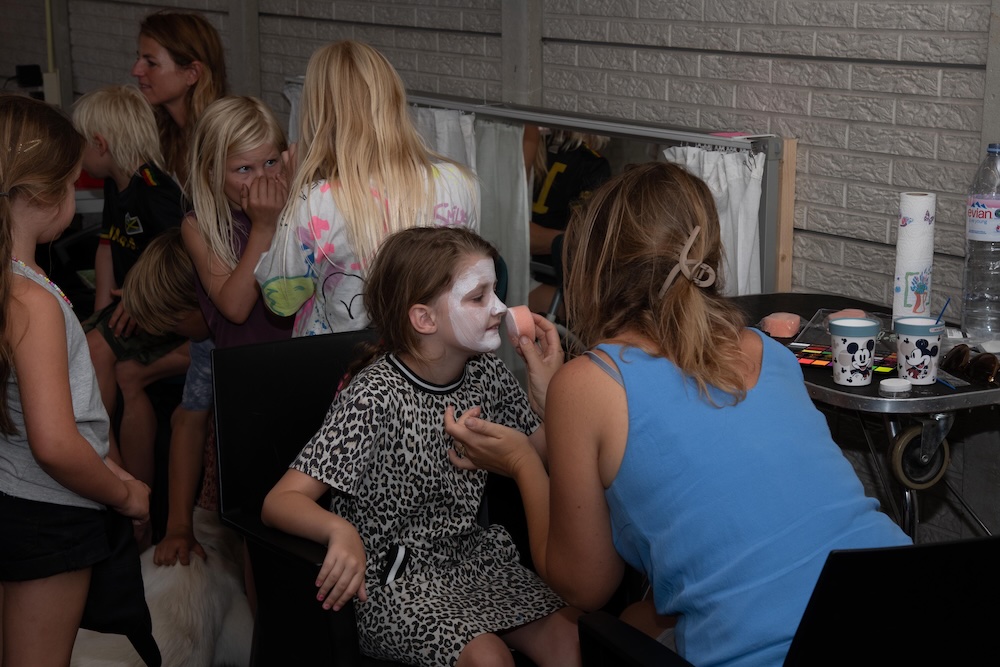 Terwijl Nicole over haar inmiddels 35 jaar durende carrière als bevlogen kynoloog, instructeur en liefde voor herders sprak werden de kinderen geschminkt als witte herder (of één van hun andere idolen zoals spiderman..).