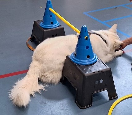 In de Body & Mind workshop leer je d.m.v. balans en coördinatie oefeningen je hond zich bewuster te maken van zijn lichaam waardoor hij zich vrijer en dus zekerder gaat voelen. Er is geen druk of dwang en je leert hoe je je hond kunt helpen toch die ene stap te maken waar hij/zij over twijfelt. Inschrijven voor onze Body & Mind workshop kan vanaf de leeftijd van ongeveer 5 maanden.